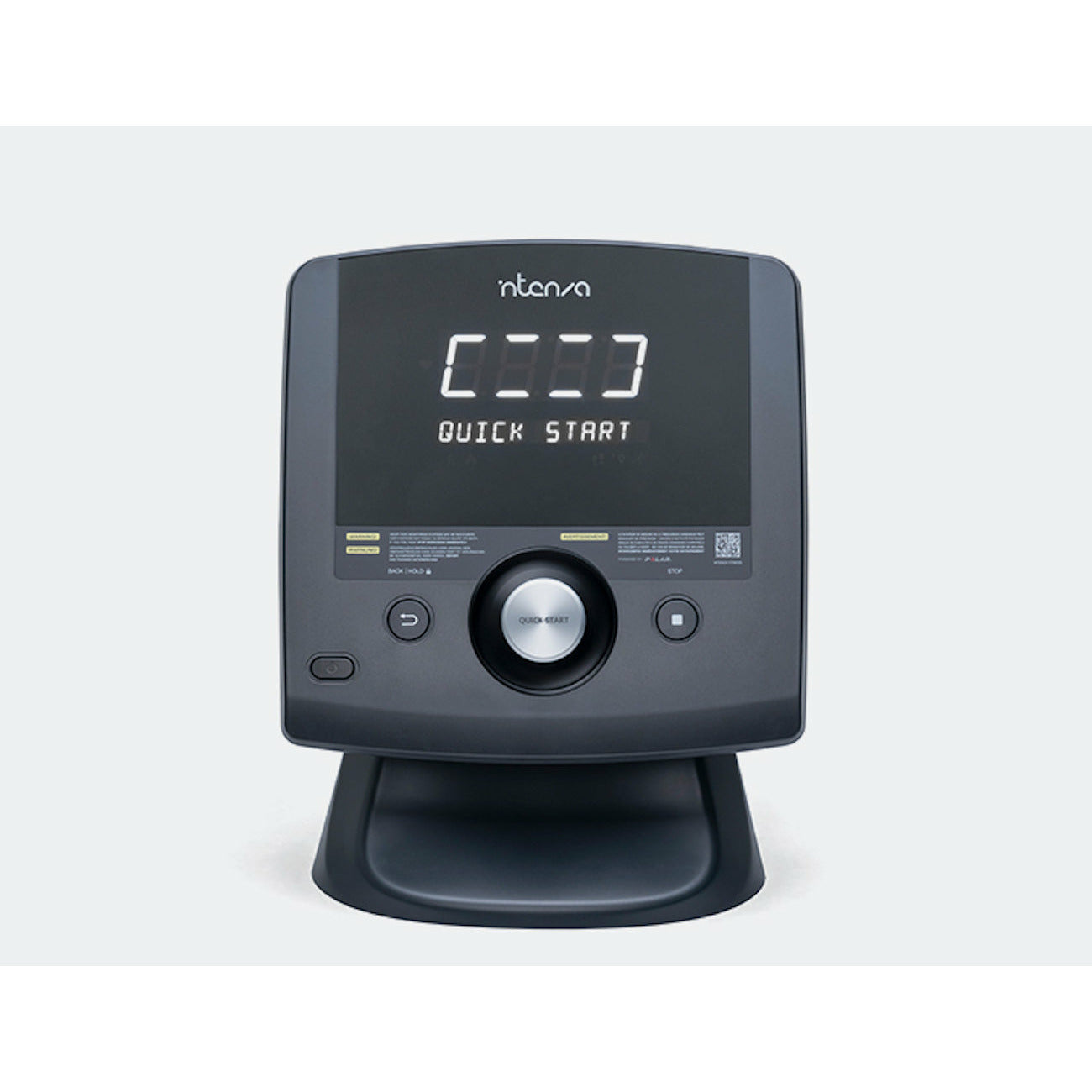 Synonymous with function and value, the beautifully proportioned Intenza 450 i2S Console is designed for training with purpose and clarity. With a simple and intuitive clean, white LED backlit user interface, comprised of three buttons, Intenza’s precision Uni—Dial™ puts users front and centre to offer complete access to features at all times. Encased in laser etched aluminum, its anti—slip beveled sides deliver unrivalled functionality and control during workouts.