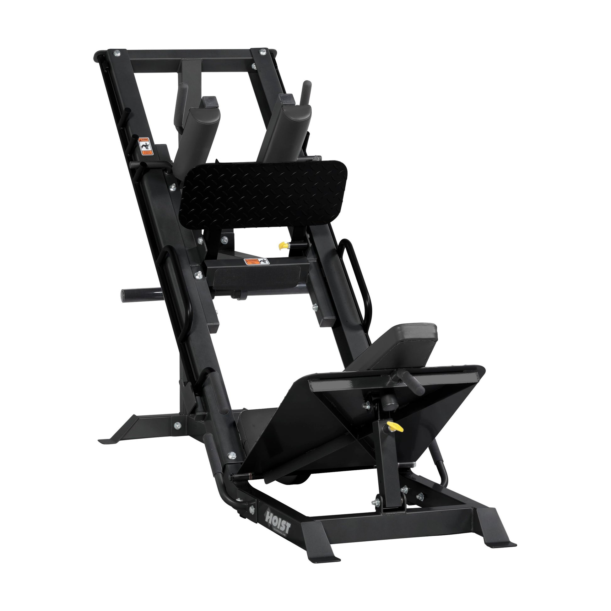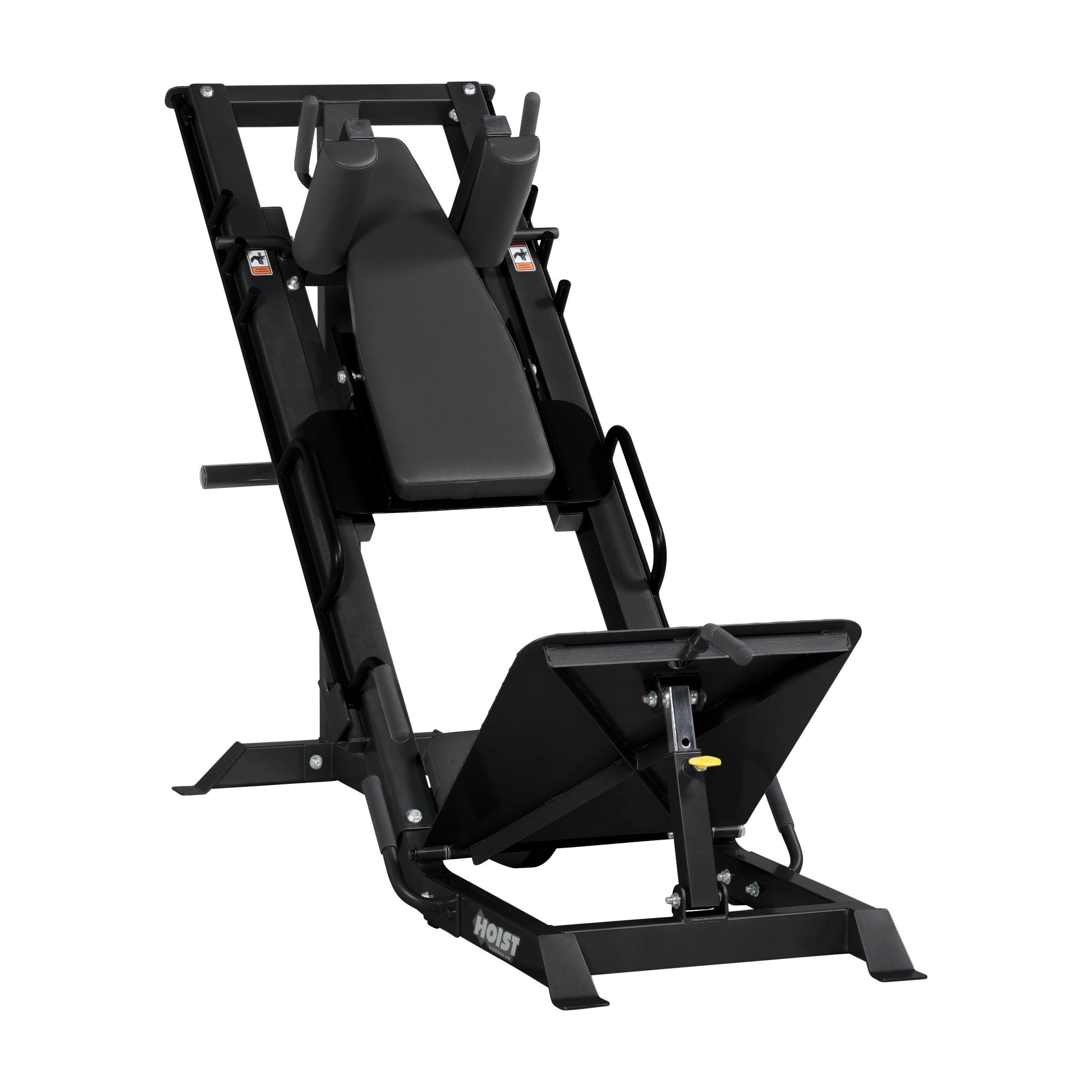 - Dual purpose back pad attaches for both hack squat and leg press exercise positions