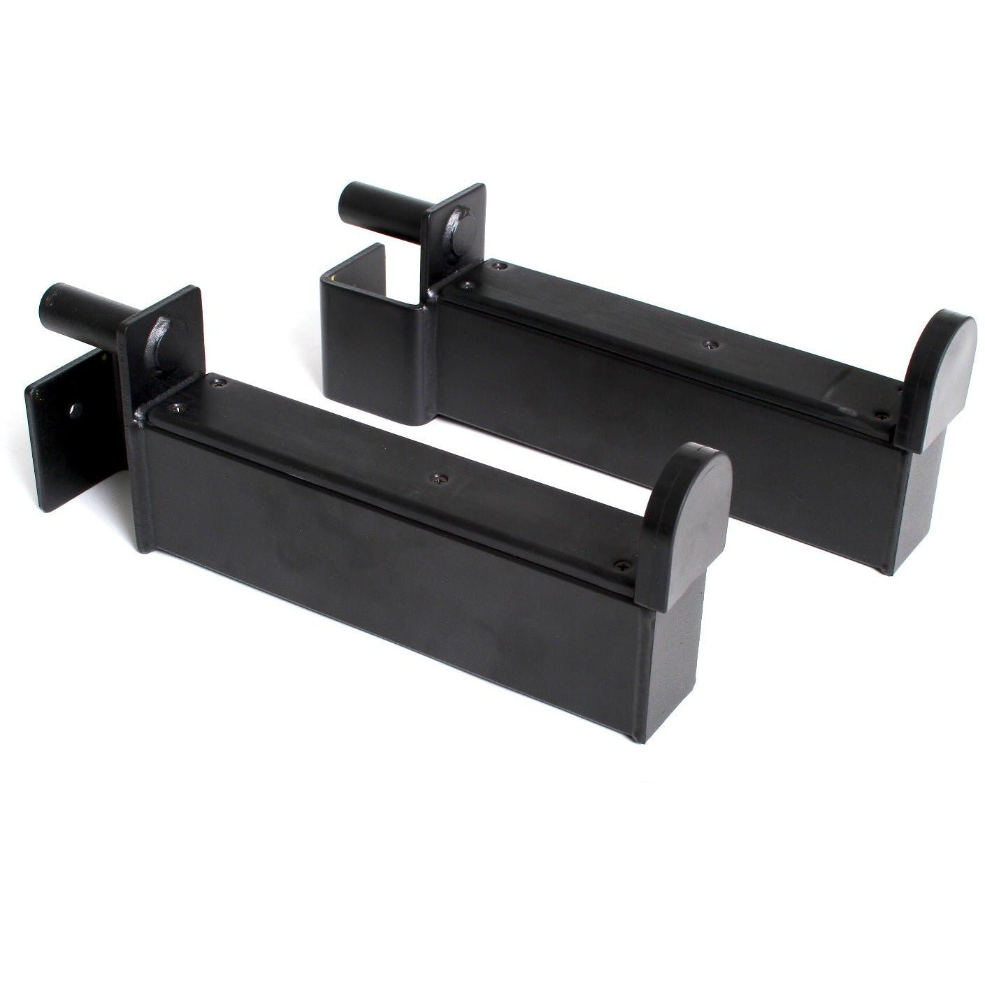 Padded for bar protection - Slightly longer hooks for safety - Angled for a perfect lift off and set down. Fits Powertec Power Racks and Half Racks Only with Uprights of: 2 ⅜" x 2 ⅜". Not designed for non Powertec products