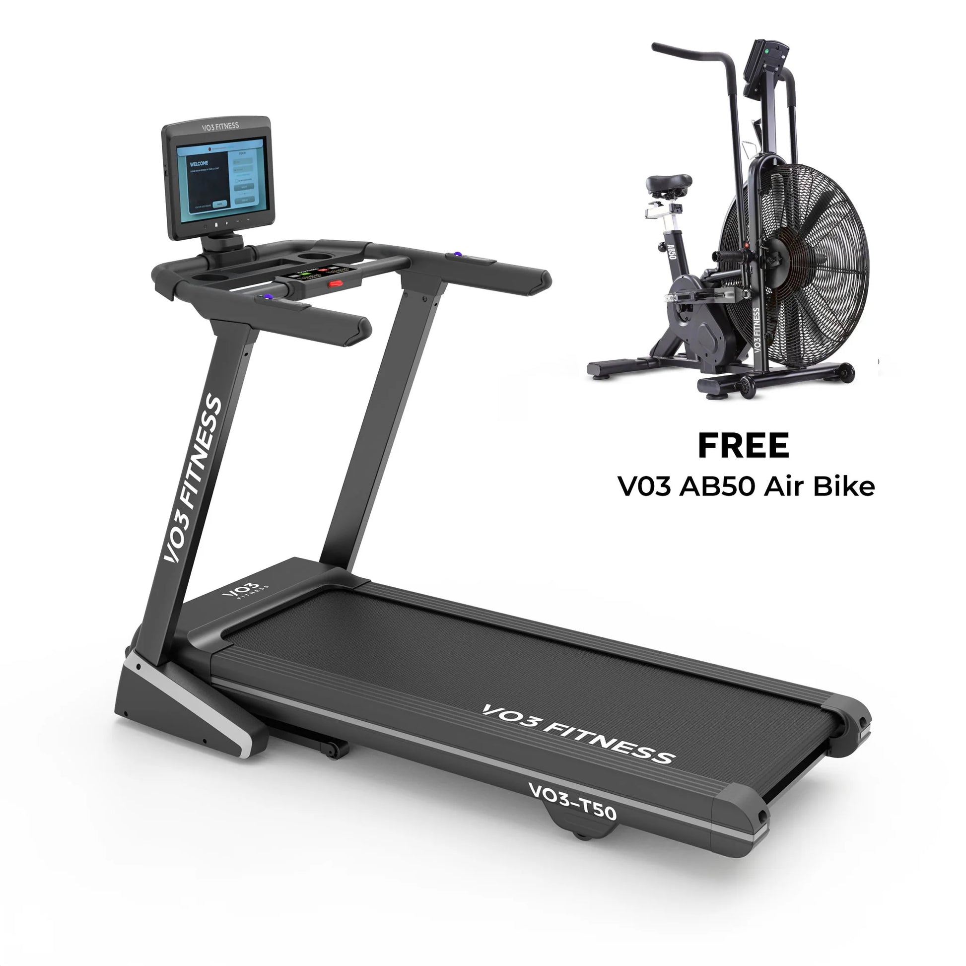 VO3 Fitness T50e Folding Treadmill + Air Bike